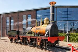De Arend rijdt op een breder spoor dan we nu gewend zijn. Nederland kiest in eerste instantie voor een spoorwijdte van 1.945 millimeter, ook wel breedspoor genoemd. Dat zou veiliger zijn. Later is men overgegaan op een wijdte van 1.435 mm, aangeduid als normaalspoor, net als de sporen in de ons omringende landen. Op het museumterrein van het Spoorwegmuseum ligt nog een klein stukje breedspoor.